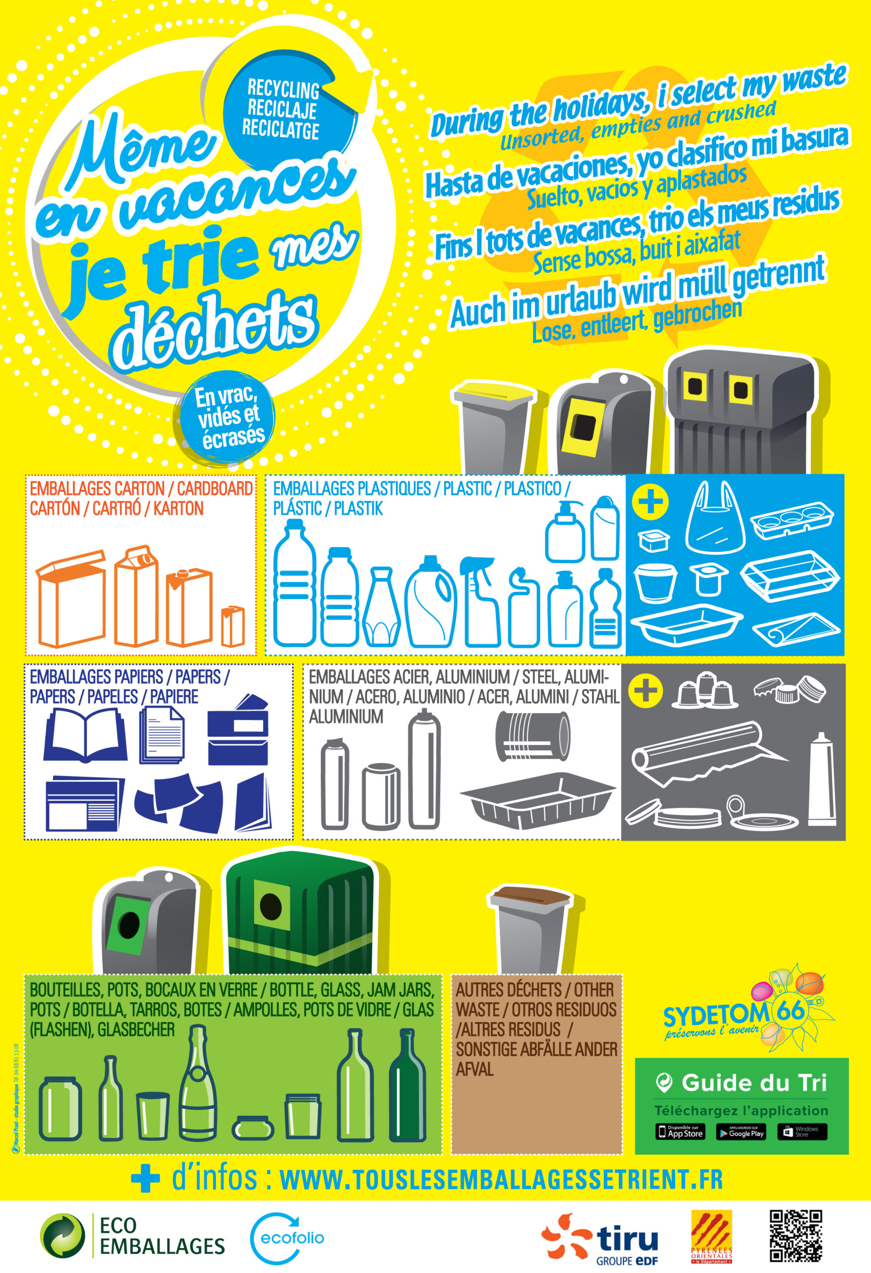 Depuis le 1er Octobre 2016, dans notre département, TOUS LES EMBALLAGES SE TRIENT et doivent rejoindre les bacs ou conteneurs jaunes. Ce nouveau geste de tri, qui est aujourd’hui obligatoire en France, simplifie grandement le geste de tri des usagers.
